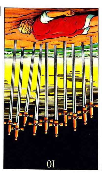 The 10 of Swords is about saying final goodbye to things or people that are bad to you.