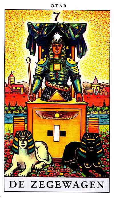 During the prevous card, The Lovers, all the wisdom of the first cards in the deck has been processed and a choice was made for personal growth. Now it's time to do something with all this baggage, to actually travel the road. A lot has been done so far, wisdoms have been accumulated and integrated into one's personality.