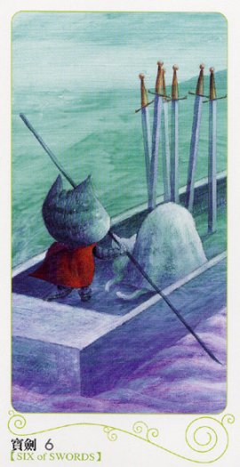 The 6 of Swords is a reward number after the hard assignment in 5 of Swords, it brings you to a safe place to rest a bit.