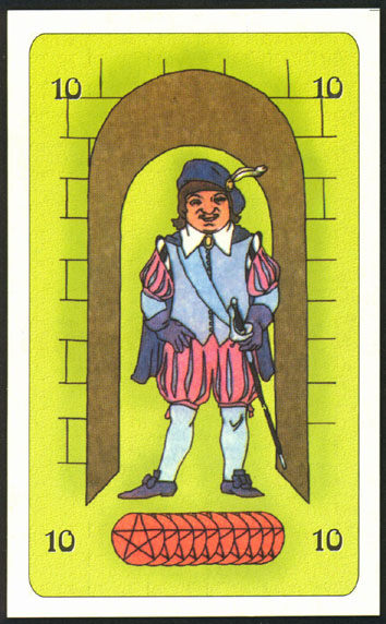 The 10 of Pentacles represents material posessions. The number 10 of Pentacles forms the links to the Ace (first card) of Wands (the first suit in the minor Arcana), and thus prepares to bring you back to the beginning of the minor Arcana, ready for a next cycle through the tarot.