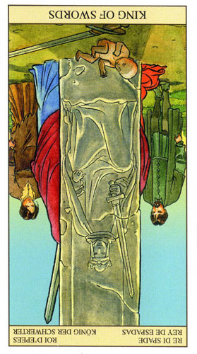 The King of Swords rules with diplomacy and a strong sense of responsibility, not just for himself but also for those around him, yet he is not afraid to make heavy decisions that compel him to eliminate dangers and dangerous opponents with some force.