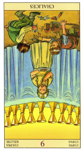 It's probably wise not to be too optimistic. If this card is next to a Swords card, it's time to be more careful and critical. If this card is next to a Coins card, it means you should be more practical and not get stuck in just thinking about your dreams and ideals.