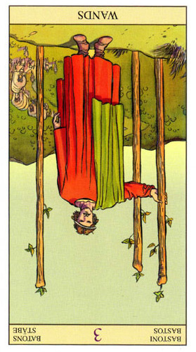 This card is about exposing your new ideas to the world. The Wand's element fire goes well with the number 3, as 3 is an output number, a number of results. Fire likes getting to results quickly.