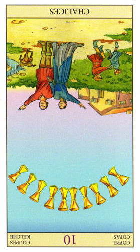 The 10 of Cups is the link to the Swords suit. It is time to leave your own emotions behind and face the world and the tasks ahead.
