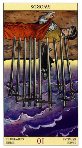 The 10 of Swords is about saying final goodbye to things or people that are bad to you.