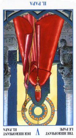 Where The Emperor is the chief of worldly power, The Hierophant is the head of spiritual matters.