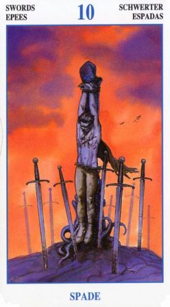 The 10 of Swords is about saying final goodbye to things or people that are bad to you.