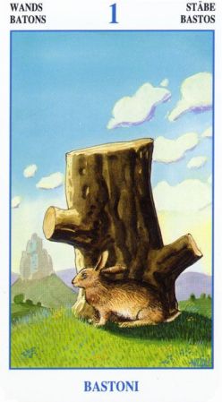 The ace of wands represents the beginning of an idea. The element fire and the number 1 give a powerful combination: enterprise and new beginnings apply to both. This is an energetic combination, which is why the card is generally considered a positive one. Spring is the season associated with this card.