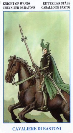 The Knight of Wands likes action and progress, but isn't too concerned with the usefulness of his actions or the ramifications to those around him.