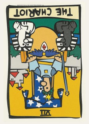 During the prevous card, The Lovers, all the wisdom of the first cards in the deck has been processed and a choice was made for personal growth. Now it's time to do something with all this baggage, to actually travel the road. A lot has been done so far, wisdoms have been accumulated and integrated into one's personality.