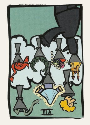 With the 4, the second cycle of this suit is commenced, where a choice between structure and feeling has to be made, where old securities have to be let go of to work towards a new future. But like Wands, Cups don't like structure much, they prefer to be free and dream rather than to make commitments and go for something.