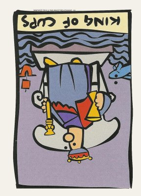 The King of Cups uses his intuition to achieve his ideals. Since Cups are turned inward, and Kings turned to the outside world, this card might be a difficult one, or it could be a powerful one.