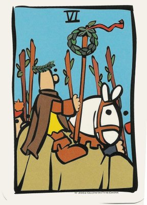The 6 of Wands represents victory (over yourself maybe). 6 is the number that represents the rewards of hard work, which you did in card 5. When a 6 of Wands is in your game, you might be feeling a little proud with your accomplishments. But some modesty might help you shine even better.