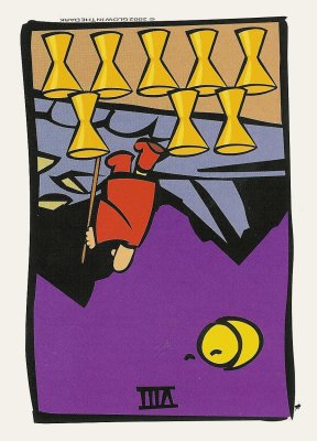 With the 4, the second cycle of this suit is commenced, where a choice between structure and feeling has to be made, where old securities have to be let go of to work towards a new future. But like Wands, Cups don't like structure much, they prefer to be free and dream rather than to make commitments and go for something.