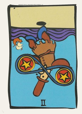 The 2 of Pentacles is an assignment number card, and the assignment here is to maintain a happy and relaxed attitude during a wait for results of what you started.