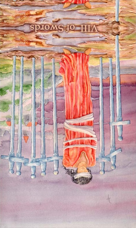 The 8 of Swords is about slowly regaining strength and energy. The 8 is an assignment number, and in the element of Swords it's a bit harder than usual.