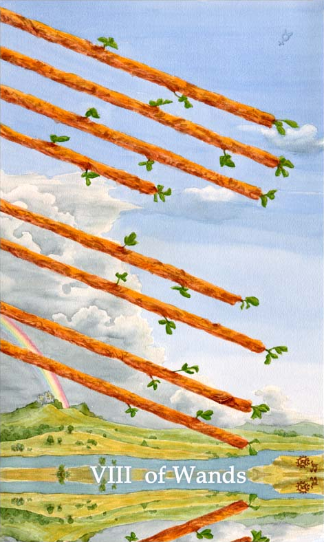 The 8 is the third and last assignment number. The element Fire, associated with Wands, doesn't like assignments much. It prefers to do exactly as it pleases.