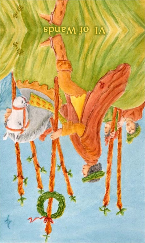 The 6 of Wands represents victory (over yourself maybe). 6 is the number that represents the rewards of hard work, which you did in card 5. When a 6 of Wands is in your game, you might be feeling a little proud with your accomplishments. But some modesty might help you shine even better.