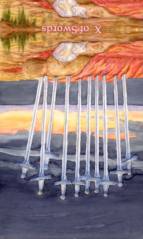 The 10 of Swords is about saying final goodbye to things or people that are bad to you.