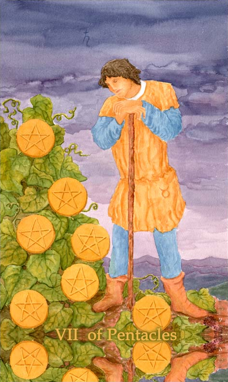 The 7 of Pentacles is about perseverance, about not giving up the work. Yet it may also make you aware that while you've started the job, you're now perhaps also quickly tired from the work.