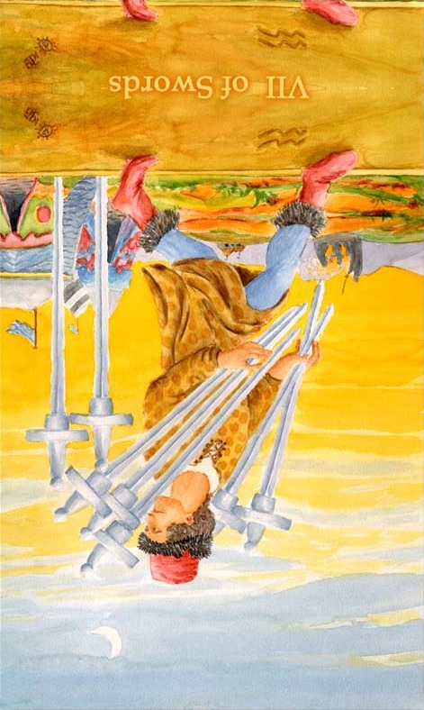 The 7 of Swords is about making slow progress because you can't trust the situation and/or people around you.