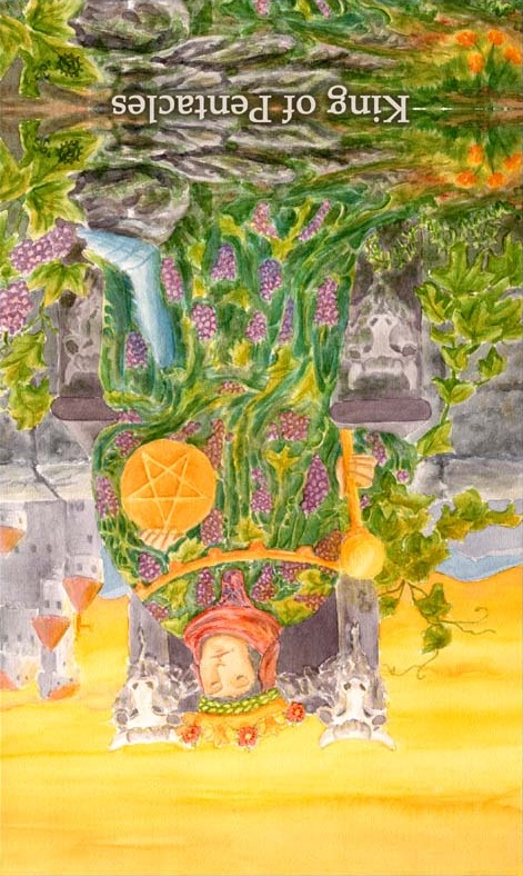 The King of Pentacles uses his Earthly attributes to rule. He goes about his work like an old style business man; he avoids unnecessary risks, aims for real results, and acts from confidence.