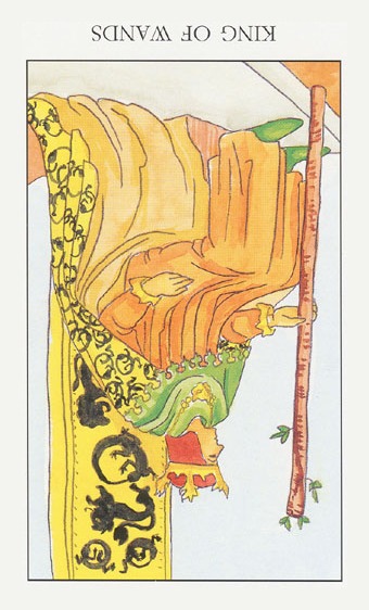 The King of Wands uses the properties of Wands (vitality, optimism, enthousiasm) to go out with confidence. He is seen as a leader with charisma.