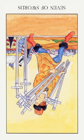 The 7 of Swords is about making slow progress because you can't trust the situation and/or people around you.
