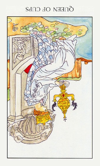 Queens and Cups are both somewhat turned inward. This might make whatever choice you're facing when this card falls, a deep one. Take your time, and don't let the issue overwhelm you or your emotions.
