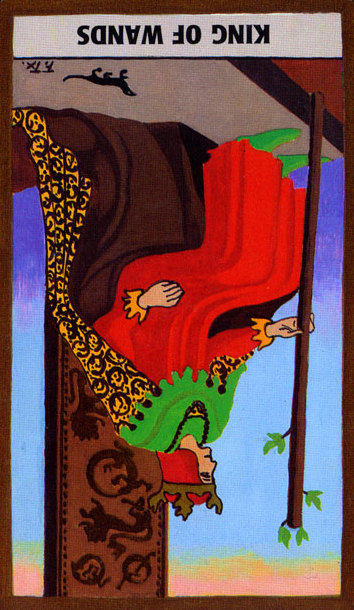 The King of Wands uses the properties of Wands (vitality, optimism, enthousiasm) to go out with confidence. He is seen as a leader with charisma.