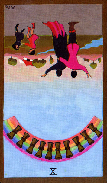The 10 of Cups is the link to the Swords suit. It is time to leave your own emotions behind and face the world and the tasks ahead.