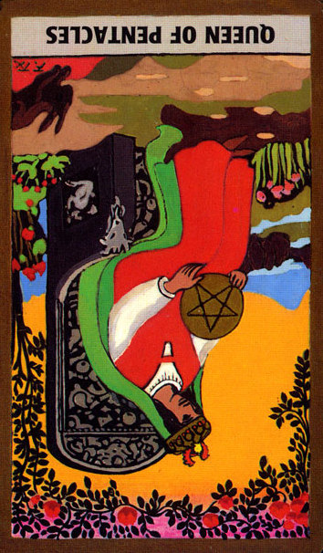 The Queen in the suit of Pentacles becomes aware of her Earthly attributes; she's reliable and sober, able to give good advice.