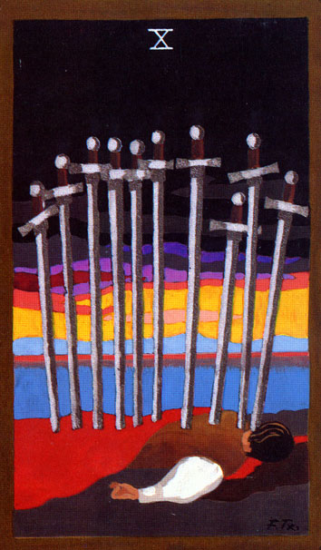 The 10 of Swords is about saying final goodbye to things or people that are bad to you.
