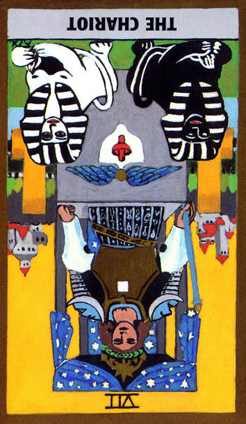 During the prevous card, The Lovers, all the wisdom of the first cards in the deck has been processed and a choice was made for personal growth. Now it's time to do something with all this baggage, to actually travel the road. A lot has been done so far, wisdoms have been accumulated and integrated into one's personality.