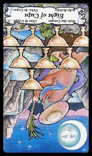 8 is an assignment number, and in the suit of Cups, it is about overcoming the urge to sink into depression caused by view on the long road ahead.