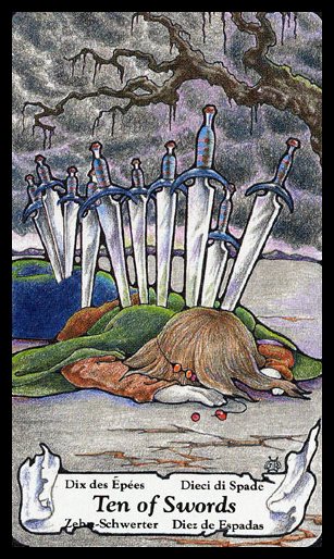 The 10 of Swords is about saying final goodbye to things or people that are bad to you.