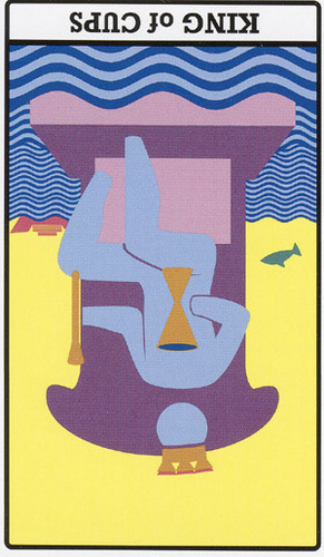 The King of Cups uses his intuition to achieve his ideals. Since Cups are turned inward, and Kings turned to the outside world, this card might be a difficult one, or it could be a powerful one.