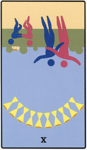 The 10 of Cups is the link to the Swords suit. It is time to leave your own emotions behind and face the world and the tasks ahead.
