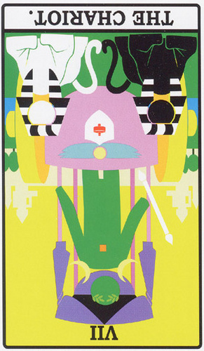 During the prevous card, The Lovers, all the wisdom of the first cards in the deck has been processed and a choice was made for personal growth. Now it's time to do something with all this baggage, to actually travel the road. A lot has been done so far, wisdoms have been accumulated and integrated into one's personality.