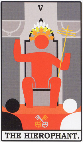 Where The Emperor is the chief of worldly power, The Hierophant is the head of spiritual matters.