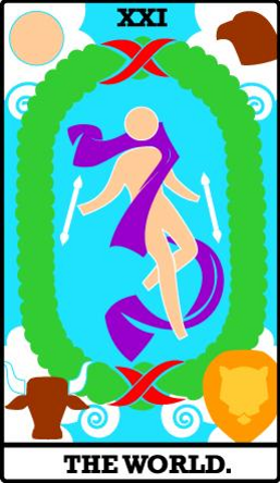 The World carries the number 21. As a composed number that is 3. The World is the third 3 in the Major Arcana. 3 is a reward number, so the third 3 must be even more powerful.