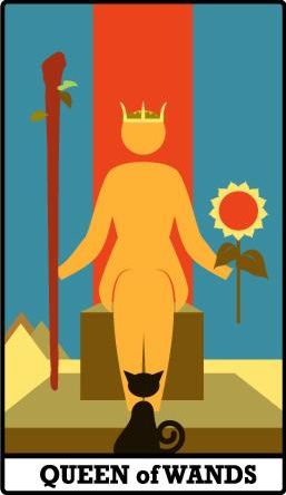 The Queen of Wands is drawn when you (have to) become more aware of the properties of the Wands suit; vitality, optimism and enthousiasm.