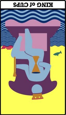 The King of Cups uses his intuition to achieve his ideals. Since Cups are turned inward, and Kings turned to the outside world, this card might be a difficult one, or it could be a powerful one.