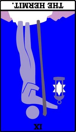 The Hermit shuts out the world and retreats into solitude to better understand some spiritual aspect of life. He opens to the cosmos and lets it's wisdom sink in. Hermits are often seen as wise old men who can guide a traveller along a journey.