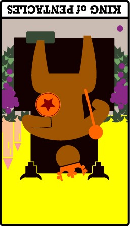 The King of Pentacles uses his Earthly attributes to rule. He goes about his work like an old style business man; he avoids unnecessary risks, aims for real results, and acts from confidence.