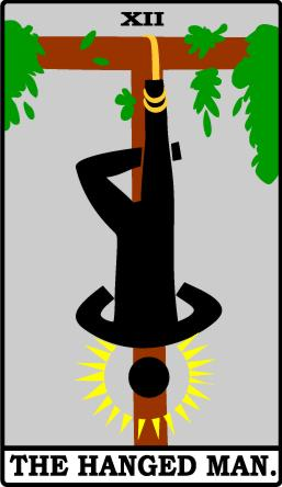 First you learned that you're not a plaything of fate, that you can make your own choices. Then you've learned how to fend for yourself and face yourself. Now, at The Hanged Man, you can learn to let go. You no longer have to cling to old values. You've found strength in yourself and by letting go, you allow growth.
