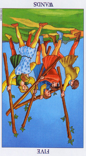 The 5 of Wands represents competition. The 5 is the second assignment number, and therefore a difficult card. 5 combined with the Wand's element fire challenges you. You'll have to fight hard for your idea, but you stand a good chance of succeeding.