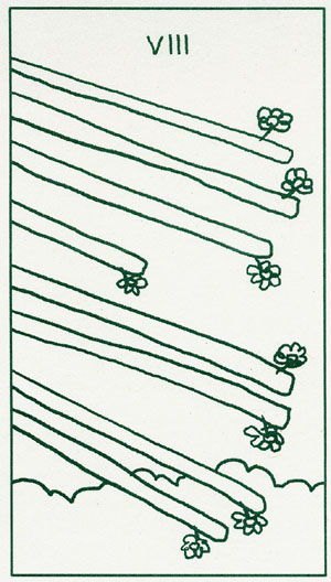The 8 is the third and last assignment number. The element Fire, associated with Wands, doesn't like assignments much. It prefers to do exactly as it pleases.