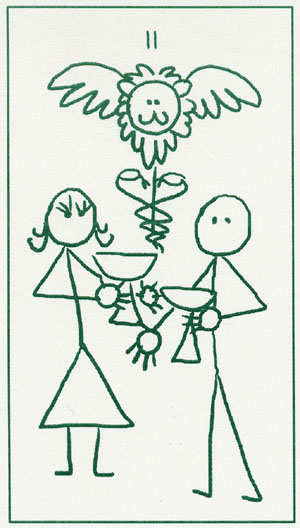 This the first assignment number of the Cups suit. Unlike Wands, with the Fire element, Cups, with the water element, has a lot more patience. Water is by nature more introspective, and this second card in the Cups suit is indeed about exploring yourself. The outcome is uncertain as always, but it usually results in better acceptance of yourself.