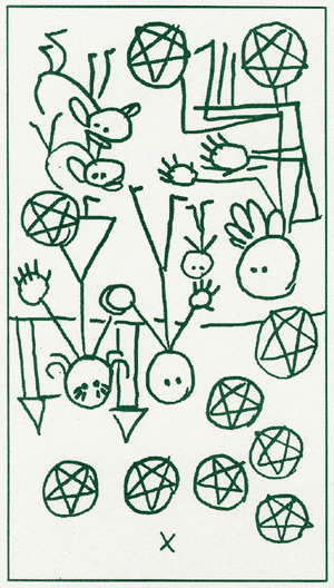 The 10 of Pentacles represents material posessions. The number 10 of Pentacles forms the links to the Ace (first card) of Wands (the first suit in the minor Arcana), and thus prepares to bring you back to the beginning of the minor Arcana, ready for a next cycle through the tarot.